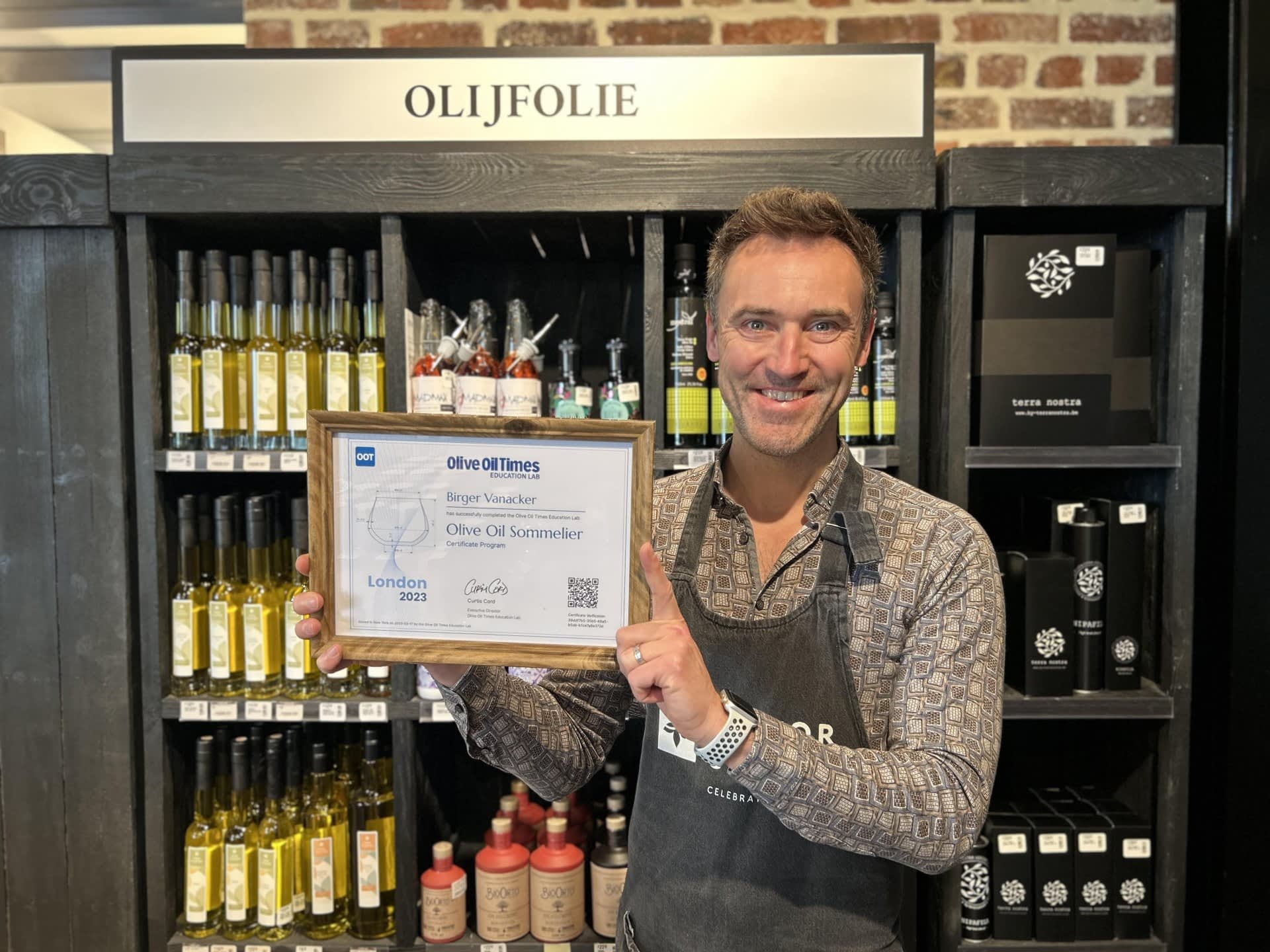 Birger Vanacker, the owner of an independent delicatessen in Belgium that sells extra virgin olive oil, enrolled in the program to improve his command of the products and educate his customers.