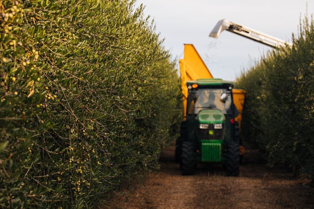 Corto harvests its olives early in the autumn using over-the-row harvesters to remove olives from the branch at the peak of ripeness, just as they turn from green to violet. The olives are transported to the company’s modern mill within hours of harvesting.
