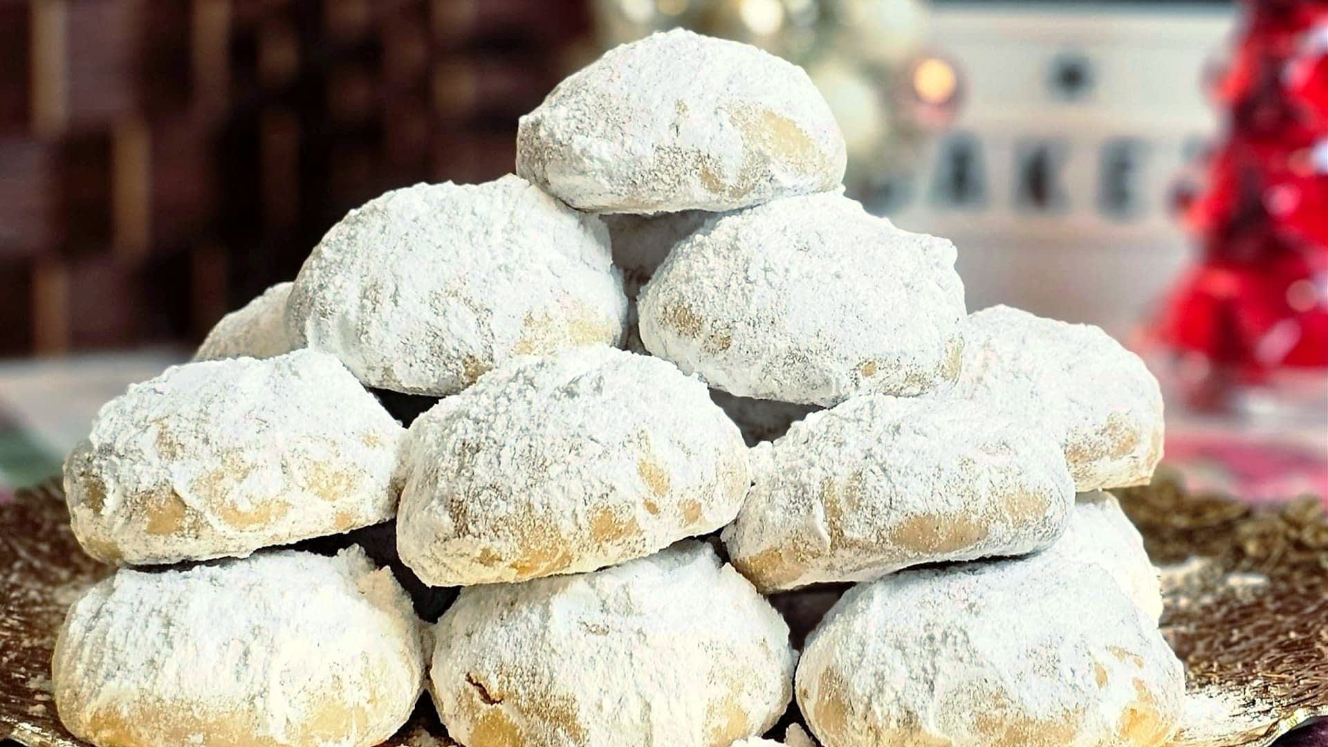 Covered in a veil of powdered sugar, these snowy round or crescent-shaped cookies are the perfect delight for the holiday season.