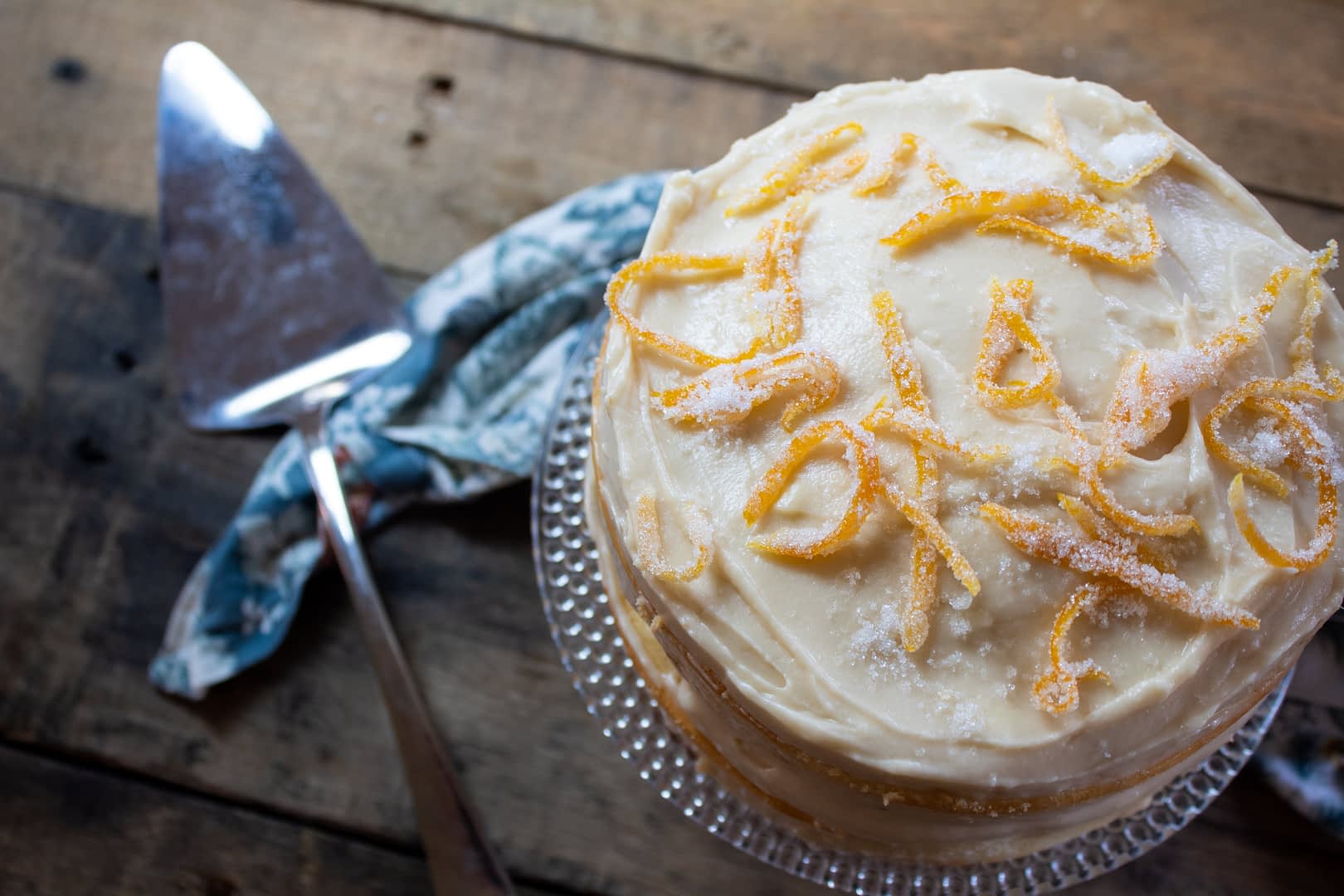 Olive oil cakes are some of the easÂiÂest and most enjoyÂable cakes to make at home. They require less work because you aren’t worÂried about creamÂing butÂter and sugar together, and they tend to stay moist longer than their dairy laden cousins. I like to use a delÂiÂcate, less spicy olive oils when bakÂing. They add just a hint of olive flaÂvor that plays perÂfectly with the sweet ingreÂdiÂents in this cake. With just whisÂper olive and a hint of lemon in the sponge offÂset by the deliÂcious canÂdied orange slivÂers on top, this cake is the perÂfect Sunday afterÂnoon treat.